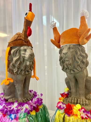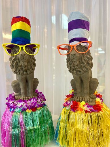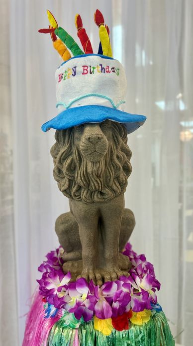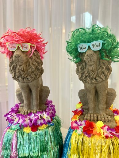 All yard displays include 2 stately lions (Leo and Leona) dressed for the occasion, themed yard signs and a personalized card for the recipient to let them know who "Roared" them.